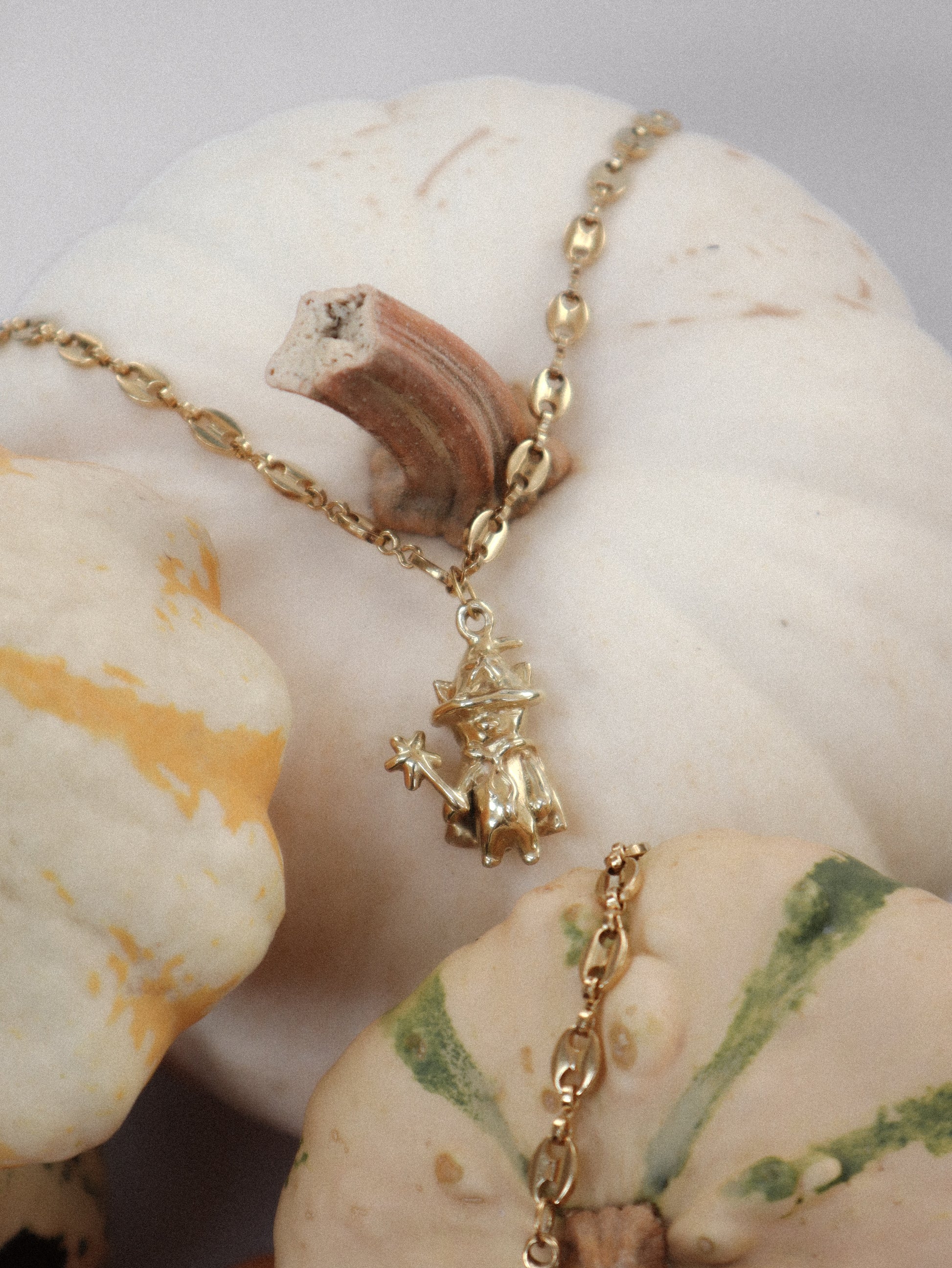 A gentle reminder of the importance of tuning in with nature’s phases: as the leaves change and the air turns crisp, we are called to slow down and renew. The witchy, playful charms in this collection, each embodying a specific aspect of fall - be it transformation, harvest, or light in the darkness - invite us to get cozy and embrace the magical introspective energy of the season of the witch.